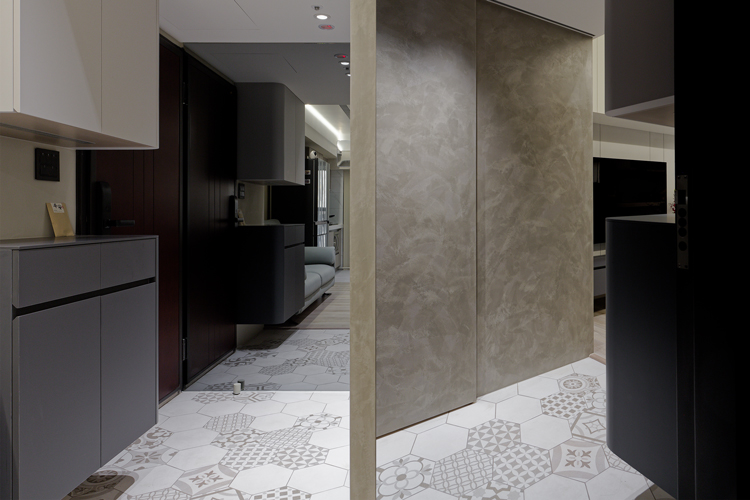 各具特色卻流暢的構圖、猶如各式花卉在空間裡綻放的燦爛。不單單 只是帶灰調的線條、搭配石紋讓整體質感更上一層樓,無論是混搭或 者是鋪貼整個空間都好似一幅迷人的畫作。