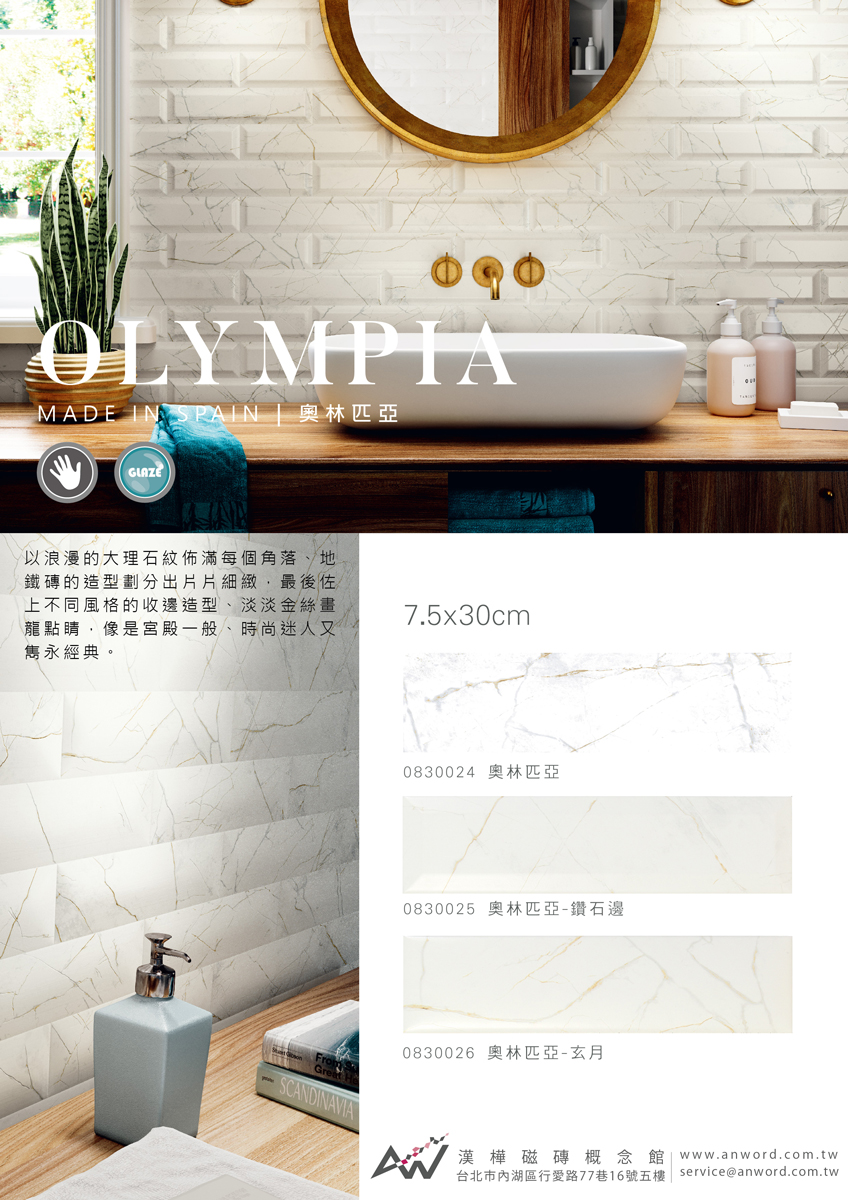 以浪漫的大理石紋佈滿每個角落、地鐵磚的造型劃分出片片細緻,最後佐上不同風格的收邊造型、淡淡金絲畫龍點睛,像是宮殿一般、時尚迷人又雋永經典。